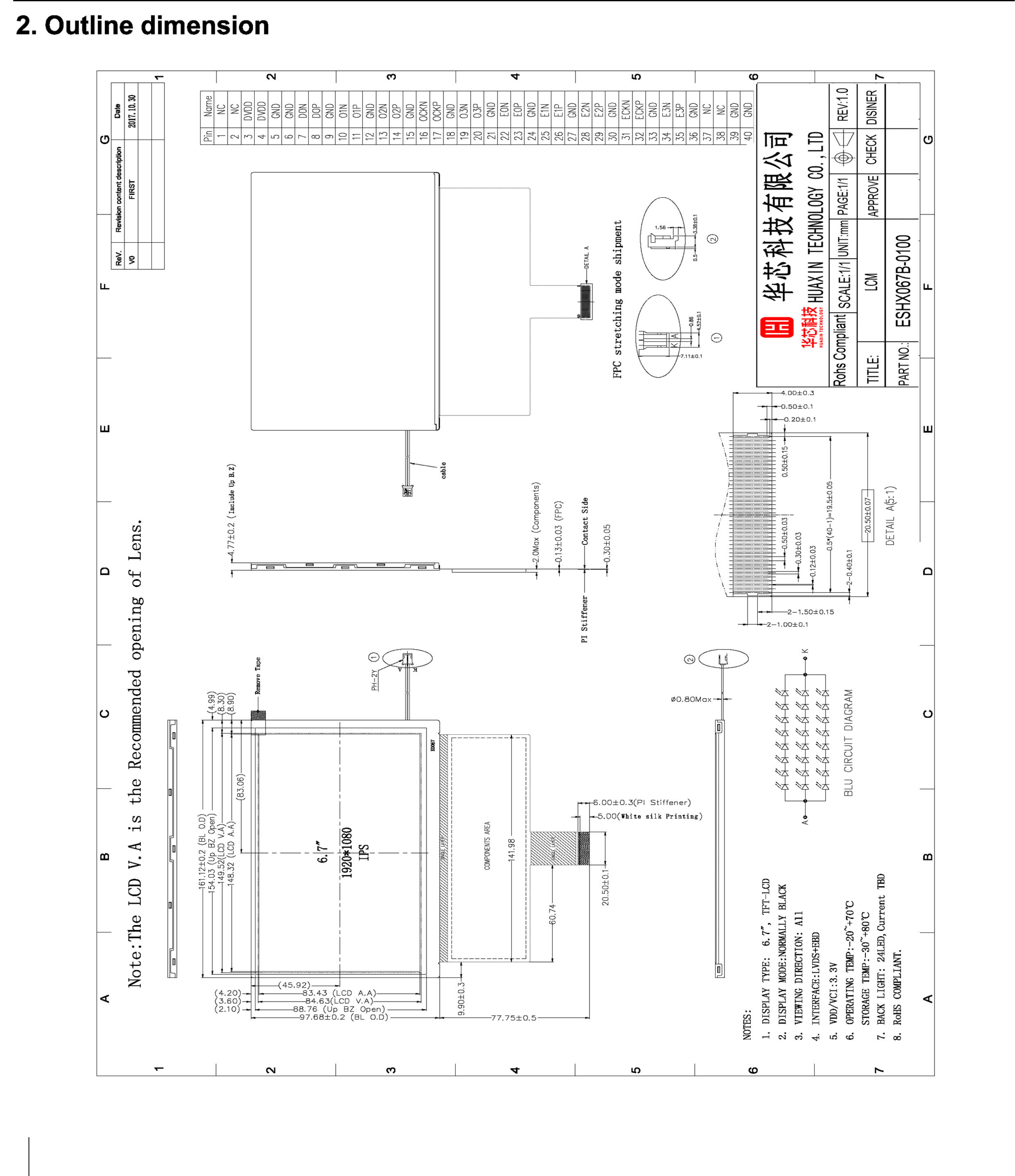 6.7 Inch FHD TFT Display High resolution Tft Display 1920x1080 Dots 40 pins 6/8BIT LVDS+EBD Interface 1000c/d Images |